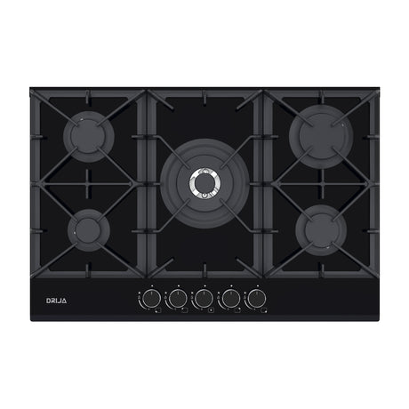 Drija Italia 76 Estufa Empotrable a Gas de Vidrio Templado | 5 Quemadores | 5 Válvulas de Seguridad
