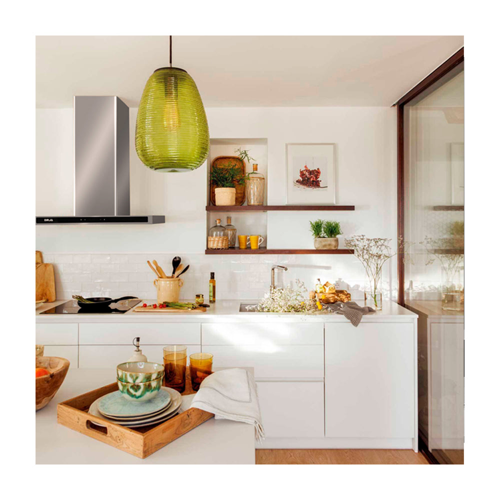 El extractor de grasa QUADRATO ISLA, disponible en tamaños de 76 y 90 cm, destaca por su eficiencia y estilo. Con 2 filtros de acero inoxidable lavables y 2 filtros de carbón, para reducir olores no deseados. Su temporizador de apagado de hasta una hora y el panel de control táctil facilitan su uso. Además, se presenta en dos elegantes opciones de color: acero y negro. La iluminación LED incorporada mejora la visibilidad, convirtiéndolo en una elección funcional y estéticamente atractiva para una cocina limpia y moderna.