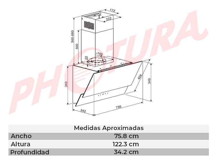 El nuevo extractor de grasa DRIJA Rectángulo 76 Black ofrece una eficiente extracción con sus 3 velocidades, control táctil intuitivo, filtro de carbón para reducir olores no deseados, temporizador de apagado automático de hasta una hora para mayor comodidad, filtro de aluminio fácil de limpiar y brillante iluminación LED. Con un diseño elegante y funcional, este extractor es la elección ideal para mantener tu cocina libre de humo y olores no deseados.