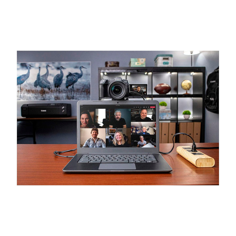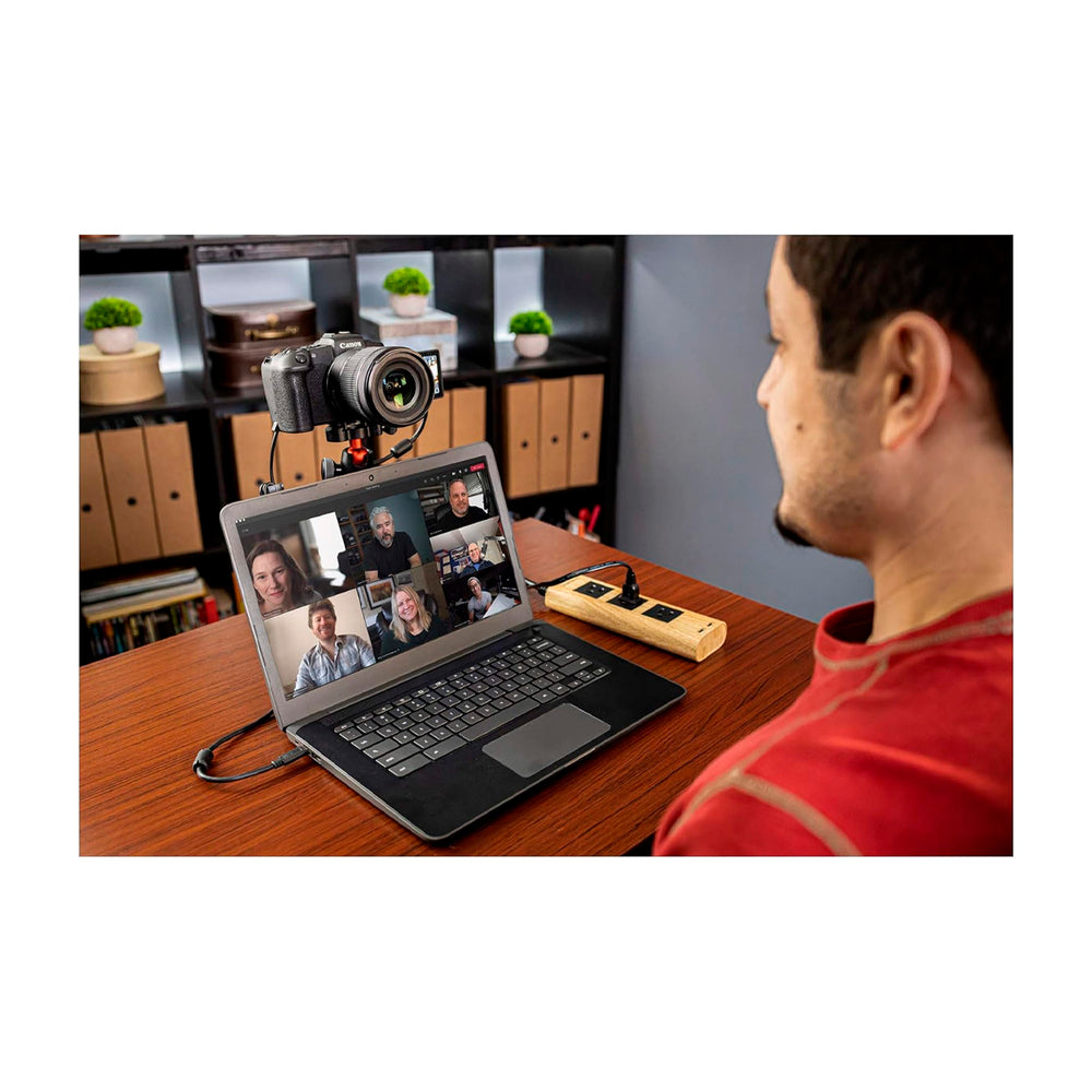 Convierte tu cámara de la serie EOS R en una cámara web de alto rendimiento que te ayudará a mejorar la calidad de tu contenido, la forma en que lo compartes y la duración de la grabación con nuestro Kit de inicio de accesorios para cámara web EOS (para cámaras EOS R seleccionadas) *. Una vez que tengas instalado el software gratuito EOS Webcam Utility, simplemente conecta la cámara a una computadora portátil, de escritorio o PC compatible con el cable de interfaz IFC-100U incluido, aliméntala con el adaptador de CA AC-E6N incluido y el acoplador de CC DR-E18 incluido a una toma de corriente doméstica estándar. ¡Listo para disfrutar de una nitidez excepcional y disparos continuos más largos! Tu público podrá verte con claridad y facilidad, ya sea que estés trabajando, enseñando, transmitiendo en vivo o simplemente contactando con amigos y familiares. Consigue los accesorios que necesitas en un práctico paquete y preséntate con la calidad y la facilidad que deseas.