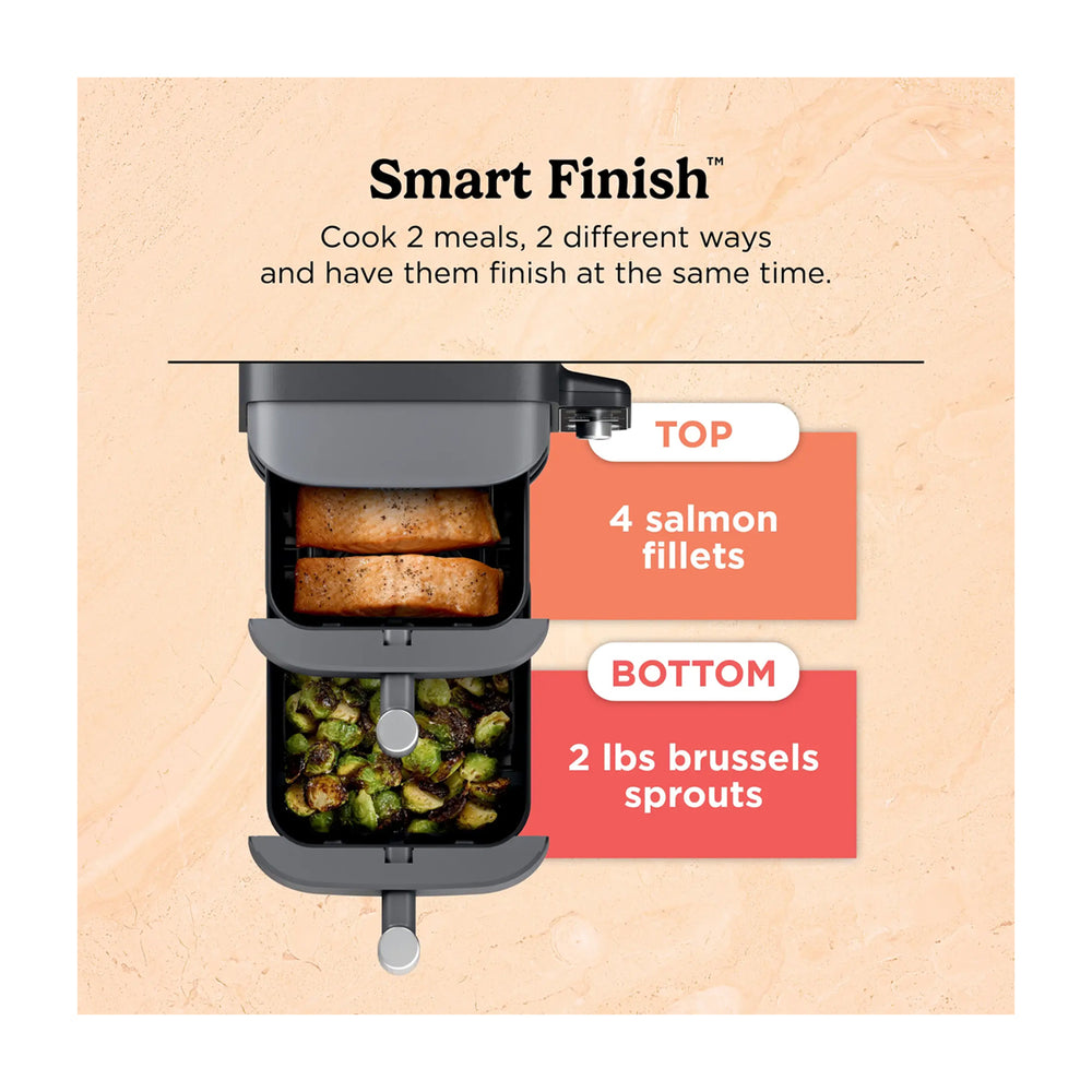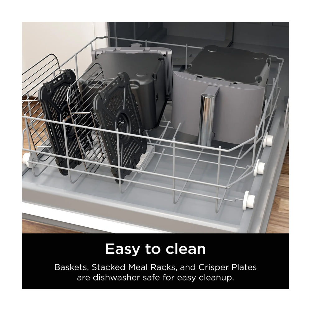 Solo el diseño apilado de Ninja tiene 2 cestas controladas independientemente para que puedas cocinar 4 alimentos a la vez