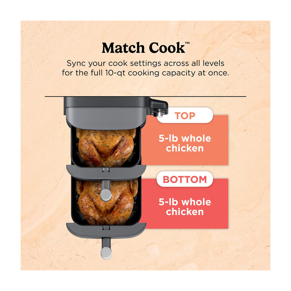 Ninja DoubleStack XL Freidora de Aire Digital 6-en-1 | 10QT | 2 Canastas | Tecnología DoubleStack | Antiadherente | Gris