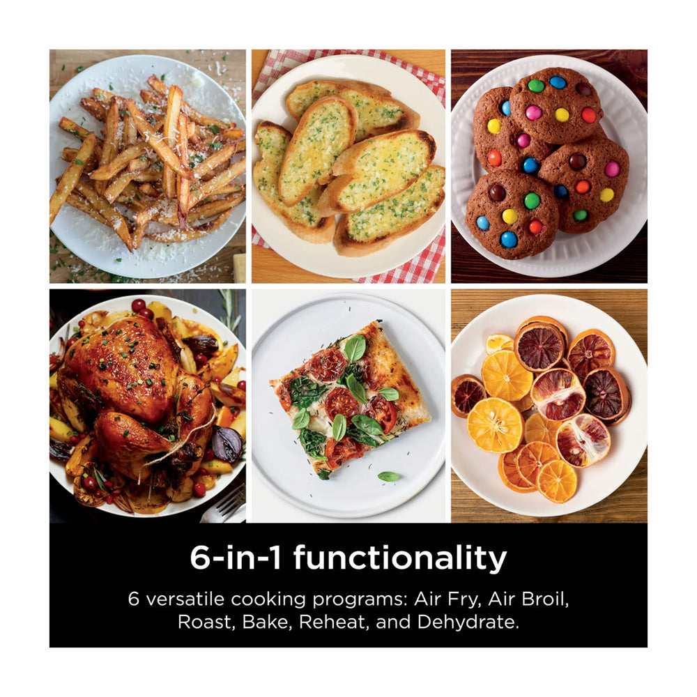 Incluye 6 programas de cocción versátiles: Freír con aire, Asar con aire, Asar, Hornear, Recalentar y Deshidratar.