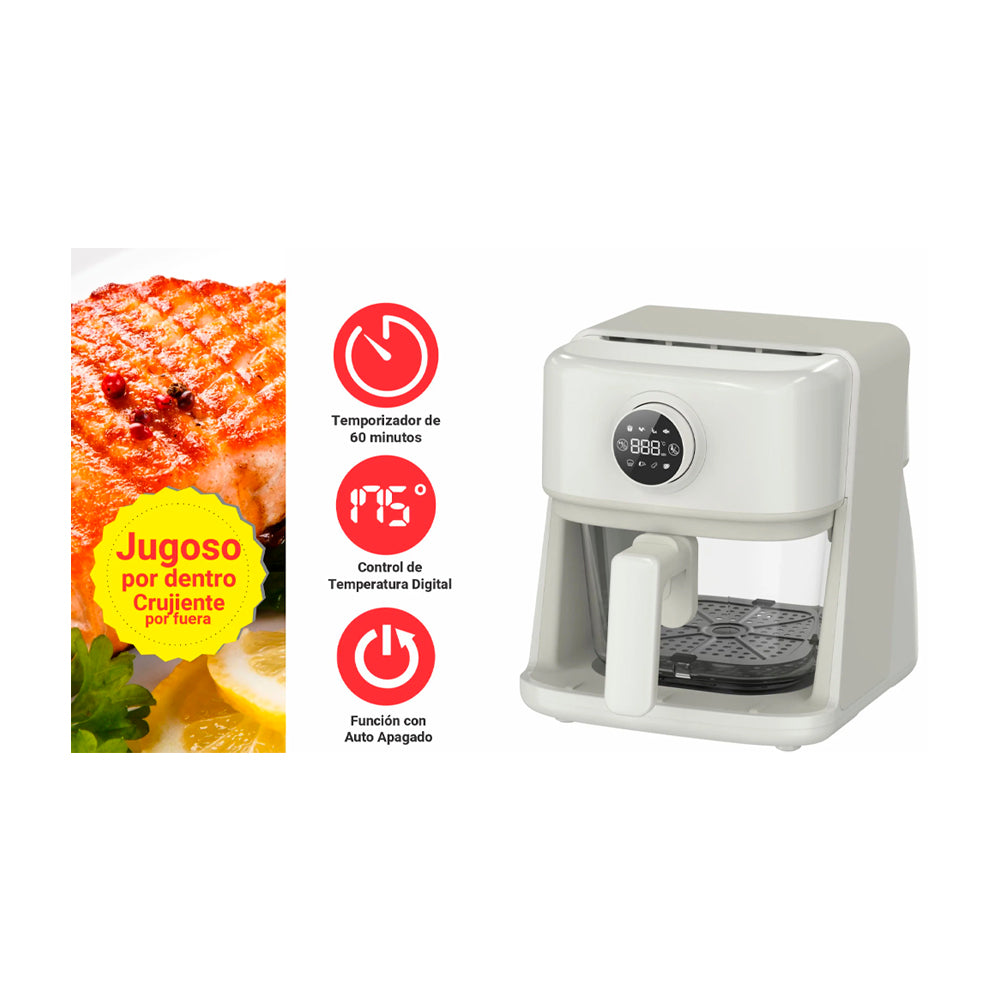Sankey Freidora de Aire Digital | 3L | Visión de Cocción | Temporizador | Control de Temperatura | Beige