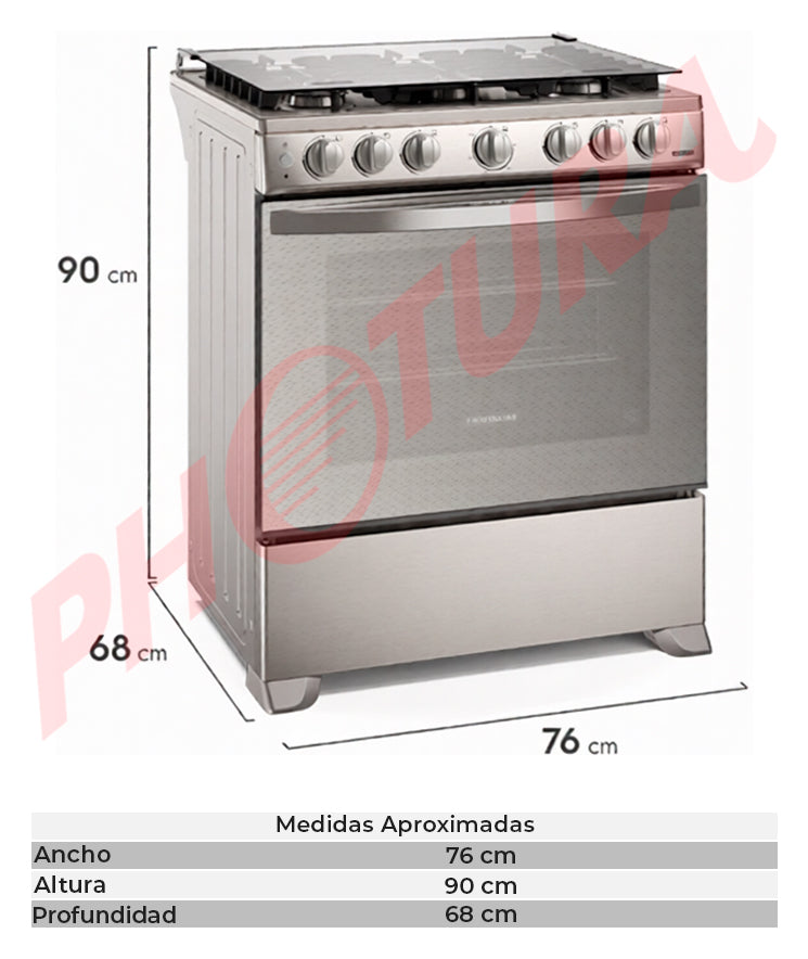 Frigidaire Estufa a Gas de Acero Inoxidable | Vapor Bake | Tapa | Enc. Eléctrico | 30" | 6 Quemadores