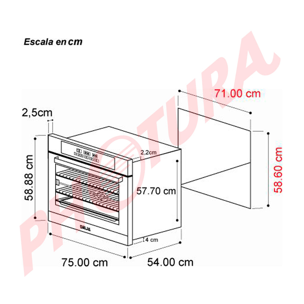 Drija Pacific 76 Air Eléctrico Horno Multifuncional Empotrable Eléctrico | Puerta de Triple Vidrio | 250°C