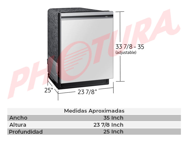 Samsung BESPOKE Lavaplatos Empotrable de 24" | Energy Star | Digital | WiFi | StormWash+ | AutoRelease | Tercera Rejilla | Silencioso 42 dBA | 15 P/S | White Glass