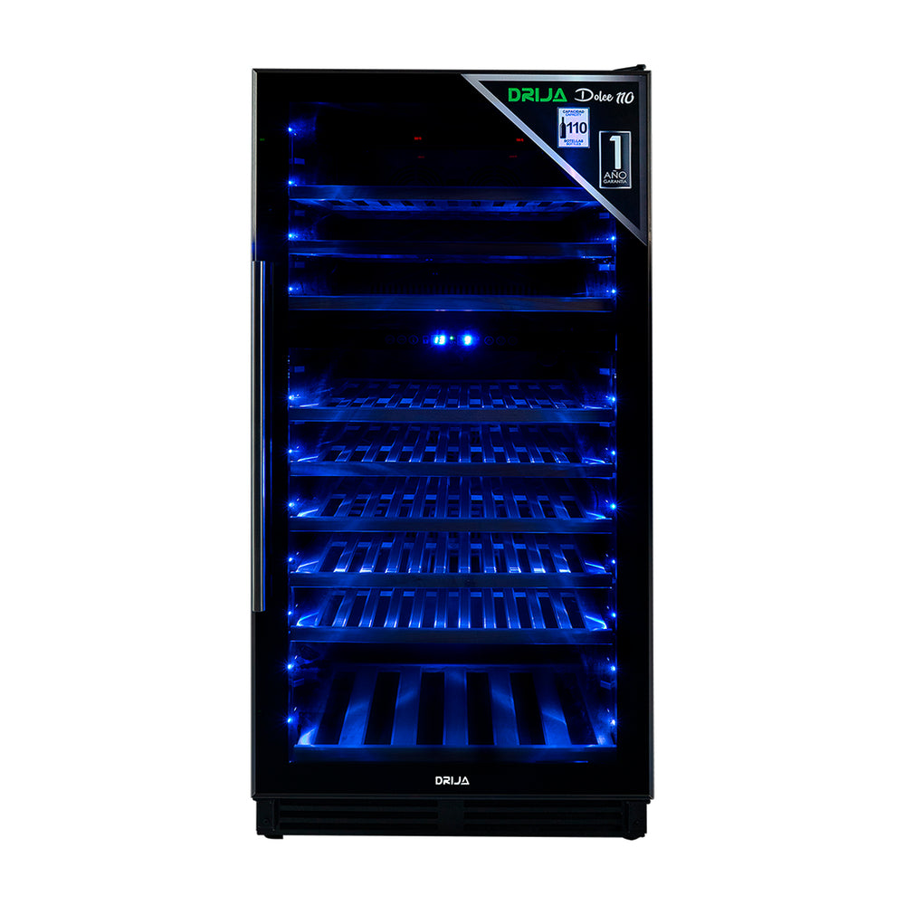 La vinera Dolce 110 de DRIJA combina elegancia y funcionalidad con una impresionante capacidad de almacenamiento para 110 botellas. Diseñada para instalación empotrable o independiente, cuenta con iluminación LED blanca, puerta reversible con triple vidrio de baja emisividad, control digital y estantes de madera natural barnizada. Ideal para quienes buscan mantener su colección en condiciones óptimas y con un diseño sofisticado.