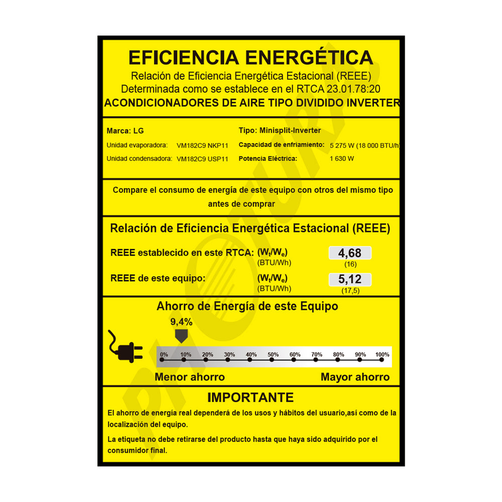 *Capacidad de enfriamiento de 18,000 Btu/h*