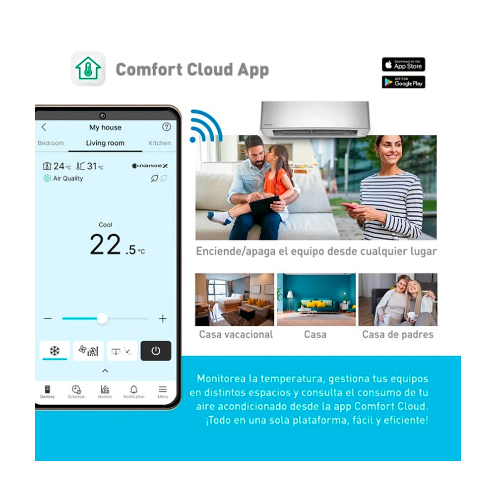 Wi-Fi incorporado: con la app Comfort Cloud podrás controlar y monitorear el consumo energético de tus aires acondicionados desde cualquier lugar.