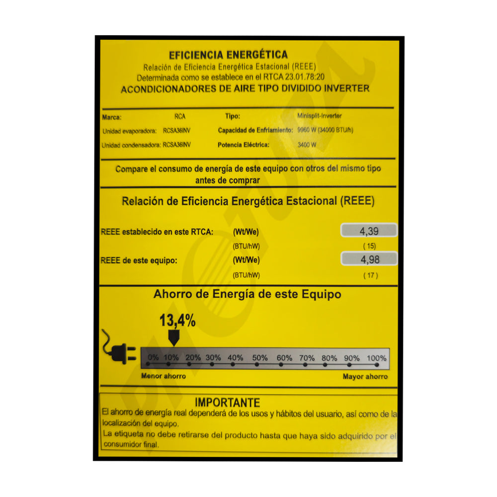 RCA Aire Acondicionado Split Inverter +Plus 34,000 BTU | SEER 17 | WiFi | Bluetooth | Compatible con Google Assistant & Amazon Alexa | Función Health | 220V