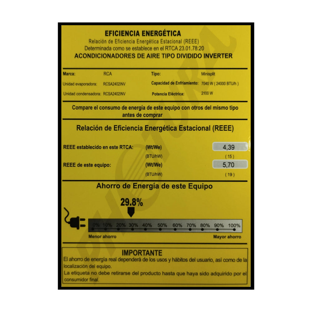 RCA Aire Acondicionado Split Inverter +Plus 24,000 BTU | SEER 19 | WiFi | Compatible con Google Assistant & Amazon Alexa | Función Health | Limpieza automática | 220V