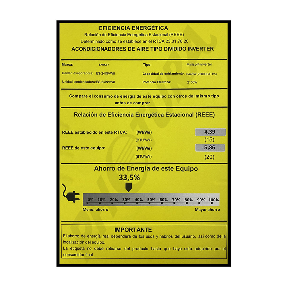 Sankey Aire Acondicionado Split Inverter Serie Superiore 22,000 BTU | SEER 20 | Alta Eficiencia | Protección de Voltaje | Enfriamiento Supremo | Silver Ion | Filtro de Carbón Activo | 220v