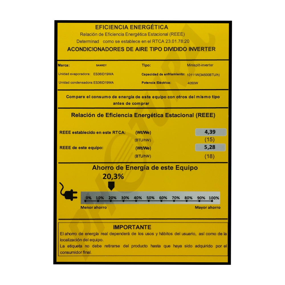 Sankey Aire Acondicionado Split Inverter 34,500 BTU | SEER 18 | Enfriamiento Supremo | Filtro de Carbón Activo | 220v