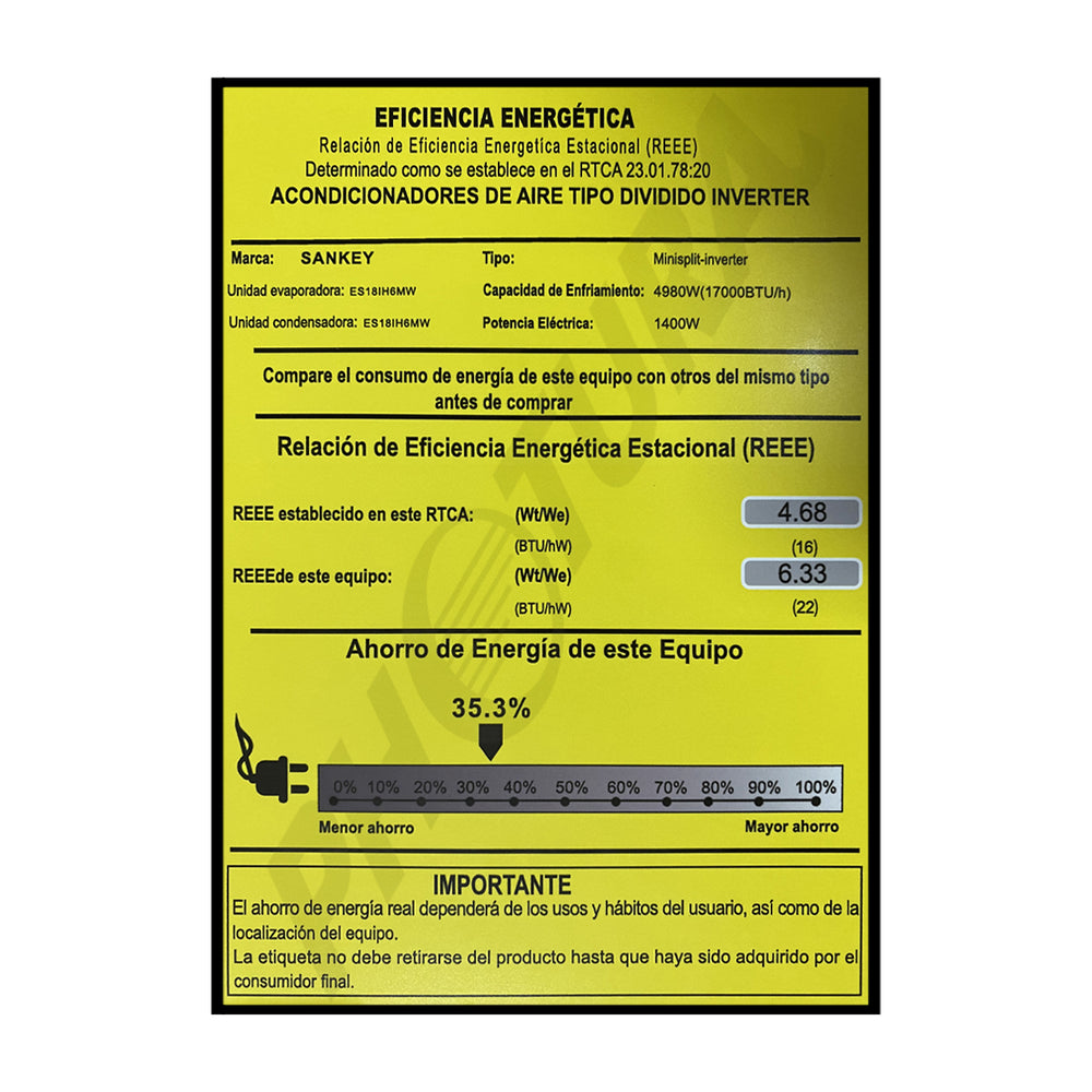 Sankey Aire Acondicionado Split Inverter 17,000 BTU | SEER 22 | Alta Eficiencia | Enfriamiento Supremo | Silver Ion | Filtro de Carbón Activo | 220v | Black Mirror