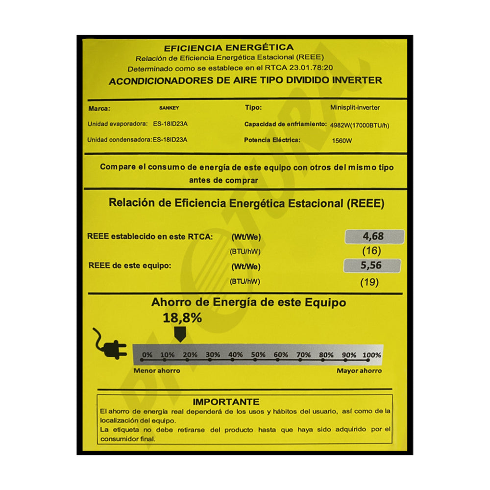 *Capacidad de enfriamiento de 17,000 Btu/h*