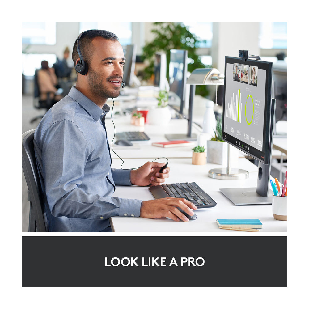 Causa una buena impresión en tus videoconferencias con un campo visual diagonal fijo de 78° para encuadrarte perfectamente a ti y a tu espacio, además de Full HD a 1080p/30 fps o 720p/30 fps. La lente con cinco elementos de cristal captura imágenes nitidísimas y colores claros. El enfoque automático se ajusta con precisión y fluidez para ofrecer definición consistente y vídeo fluido. Cierra la tapa de obturador cuando quieras estar fuera de la cámara.