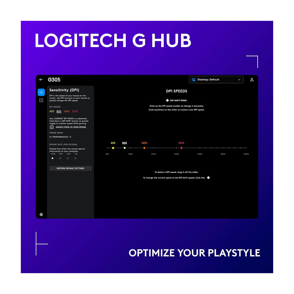 • Velocidad máxima: 400 IPS *Probado en el mouse pad para juegos Logitech G240