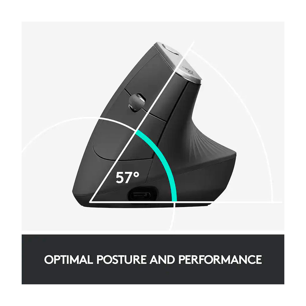 La posición de apretón de manos natural de MX Vertical reduce la tensión muscular en un 10 por ciento y promueve una postura más ergonómica.