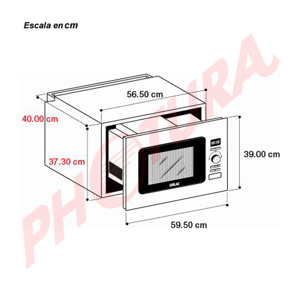 Drija Napoli 25L Black Microondas Empotrable de 900W | 0.9p3 | Cocción Grill | Sistema de Bloqueo Infantil