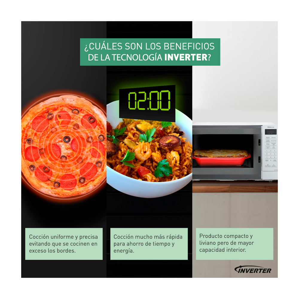 Con la tecnología Inverter de Panasonic para una cocción uniforme y una descongelación rápida, además de otras funciones como Turbo Defrost, podrá lograr excelentes resultados cada vez que cocine o recaliente su comida.