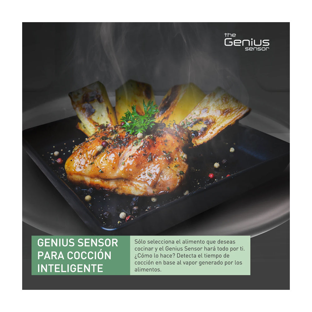 • Genius Sensor detecta la humedad de los alimentos y realiza un calentamiento óptimo.