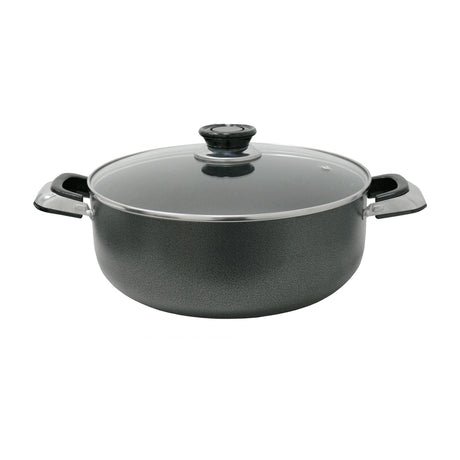 Sankey Olla de 44cm | Revestimiento de Cerámica | Tapa de Vidrio | Negro