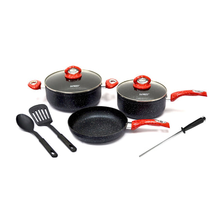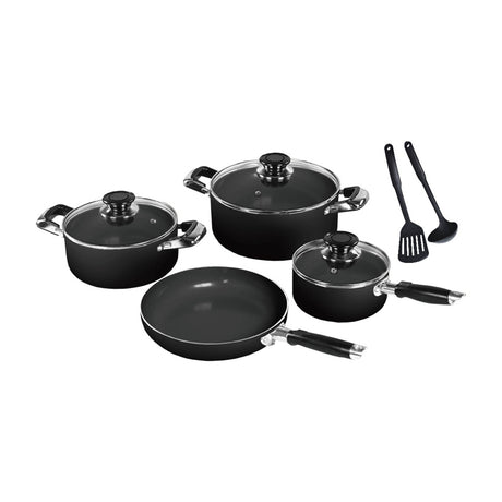 Sankey Juego de Ollas de Inducción de 9 Piezas | Revestimiento de Cerámica | Tapa de Vidrio | Negro