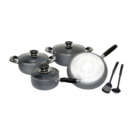 Sankey Juego de Ollas de Inducción de 9 Piezas | Revestimiento de Cerámica | Tapa de Vidrio | Gris