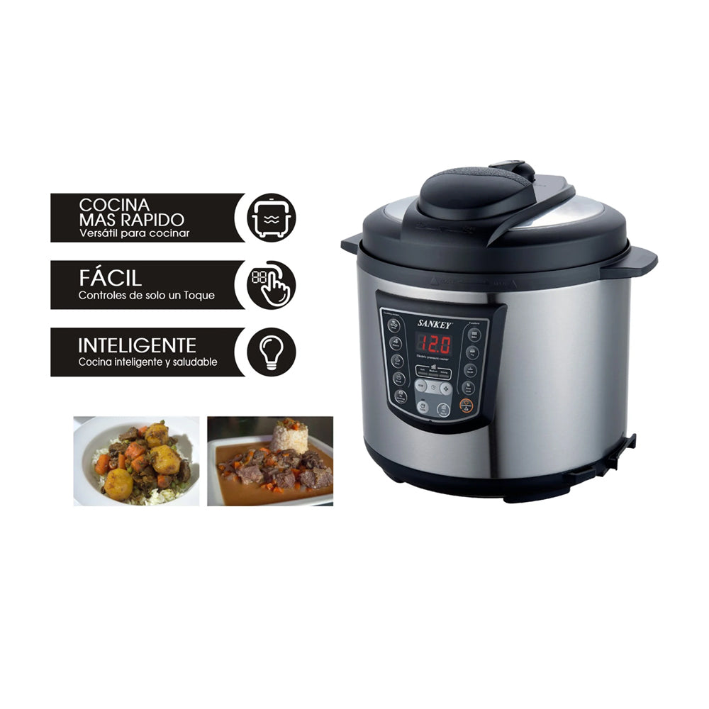 Fácil de usar, fácil de limpiar, rápido, versátil y conveniente, Sankey presenta su olla multifuncional. Con 8 programas inteligentes incorporados, cocina tus platos favoritos con solo presionar un botón.