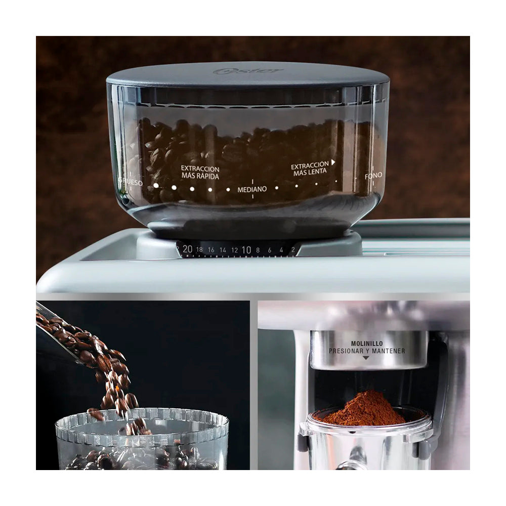 Oster BVSTEM7300 Cafetera de 12 Tazas | Espresso y Capuccino | Perfect Brew 15 Bares | Molino Integrado | Acero Inoxidable