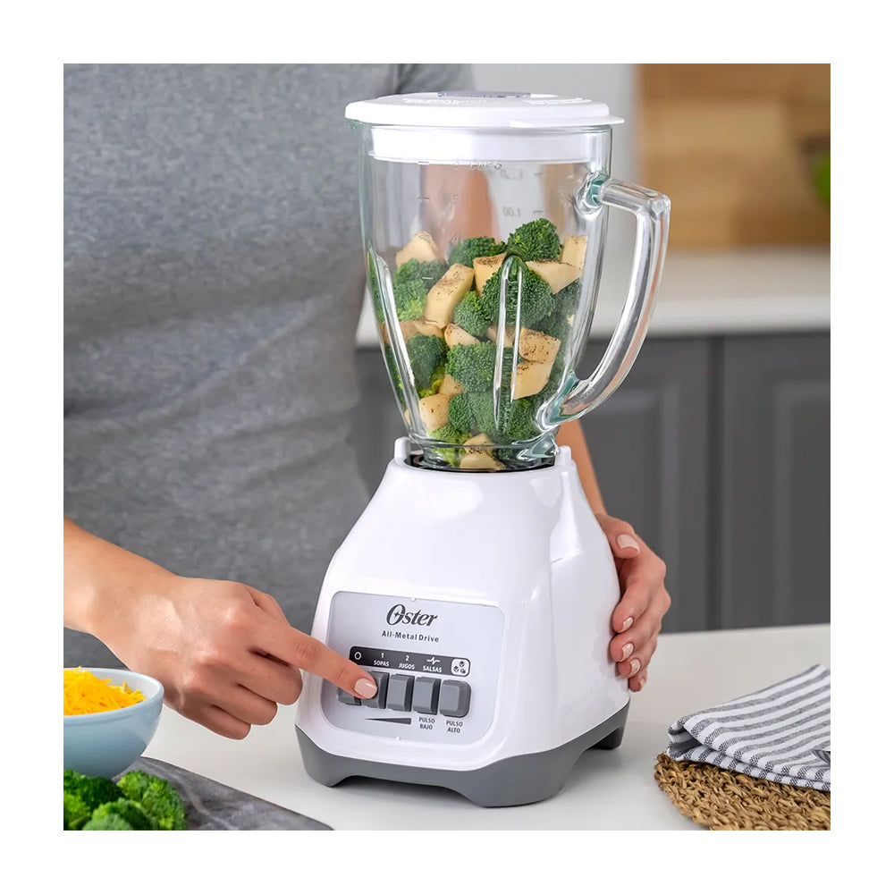 Oster BLSTKAGWPB Licuadora de 2 Velocidades | Boroclass | All-Metal Drive | Función de Pulso | 1.5L | 800W | Blanco