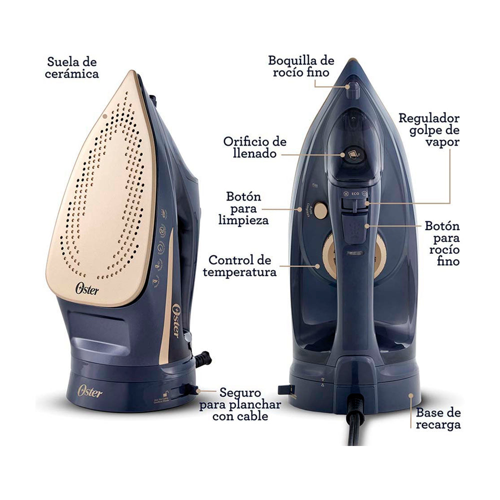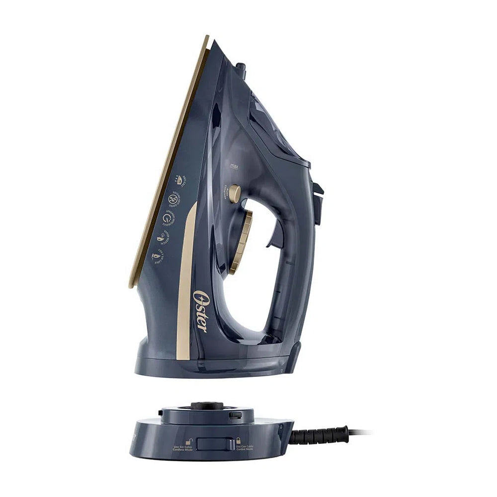 Oster GCSTCC5000 Plancha de Ropa a Vapor | Inalámbrica | 2-en-1 | Auto Limpieza / Apagado | Cerámica | Sistema Anti-Calcificación | Azul Dorado