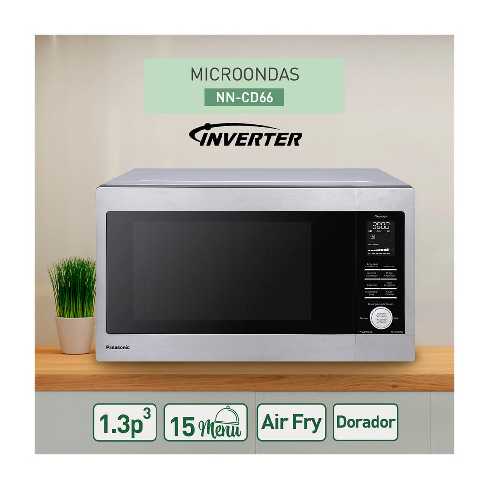 Panasonic Microondas Inverter de 1100W | Freidora de Aire | Convección | 1.3p3 | Plateado