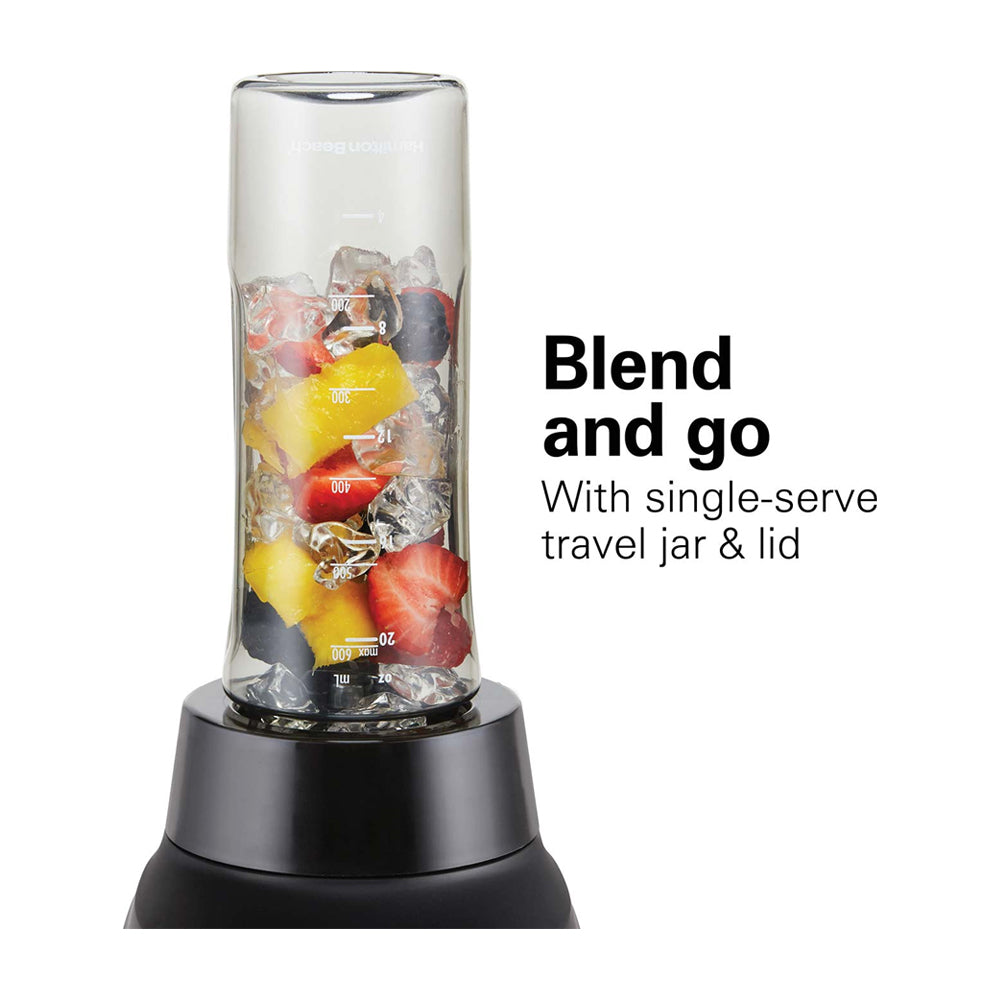 Licúa y llévate todo lo que necesites con este frasco de viaje de una sola porción y su tapa.