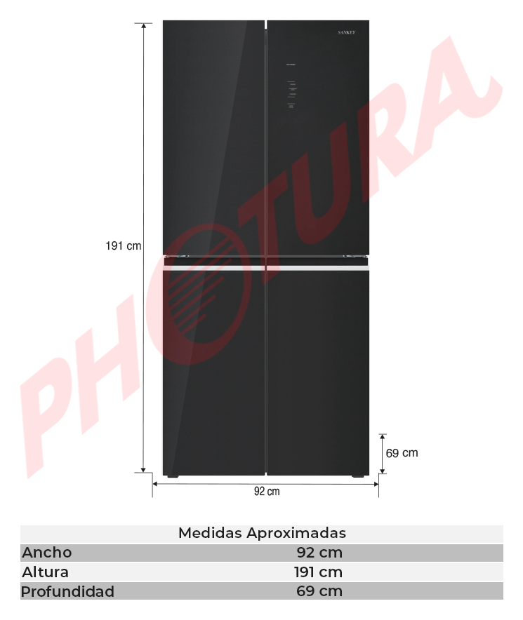 Sankey Refrigeradora Cross Door Inverter de 4 Puertas | Enfriamiento Supremo | Descongelación Automática | 18.43p3 | Negro