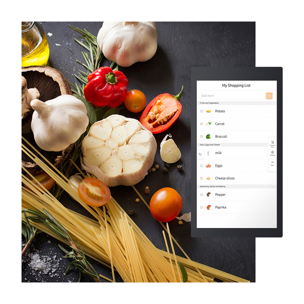 Disfruta de una forma realmente divertida y eficaz de comunicarte con tu familia. Con las notas, la lista de tareas y la galería, puedes compartir rápidamente notas, listas de tareas, instrucciones, programas de actividades y fotos. Cuando alguien se acerque al refrigerador, la pantalla principal se encenderá y podrá ver lo que has escrito.