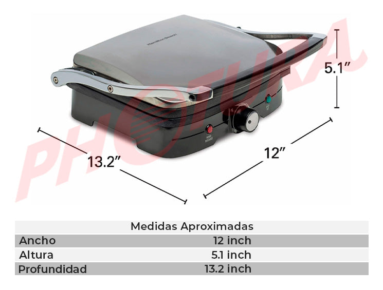 Hamilton Beach Prensa para Panini, Sandwichera y Parrilla para Interiores | Plateado