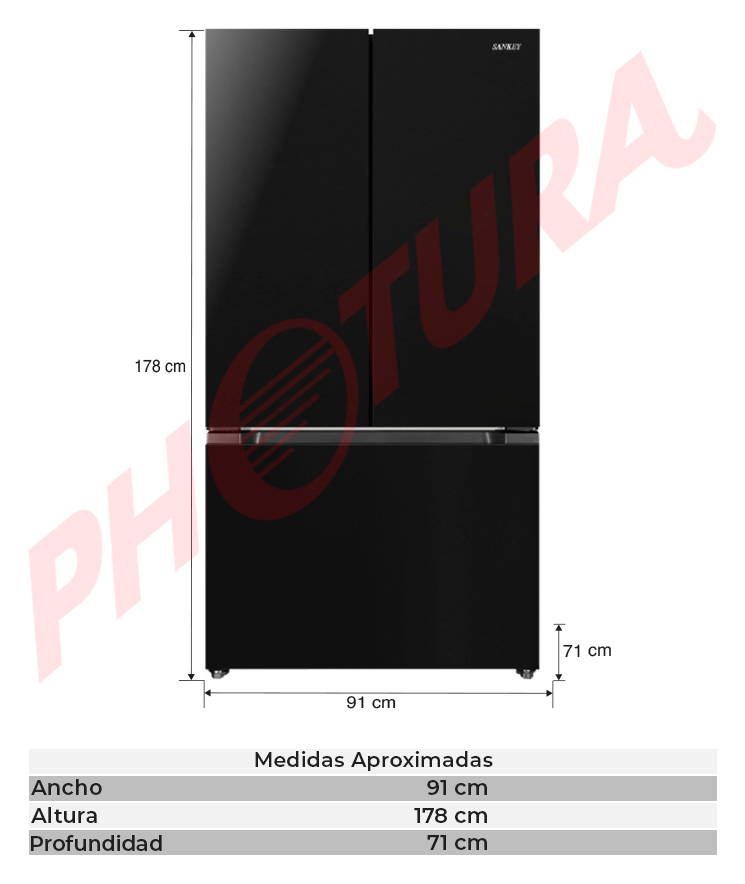 Sankey Refrigeradora French Door Inverter de 3 Puertas | Enfriamiento Supremo | Descongelación Automática | 20.34p3 | Negro