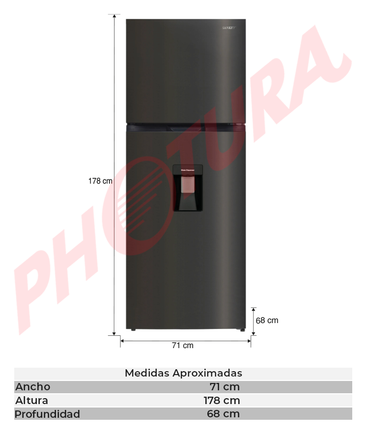 Sankey Refrigeradora Top Freezer Inverter | Enfriamiento Supremo | Descongelación Automática | Dispensador de Agua | 15.75p3 | Negro