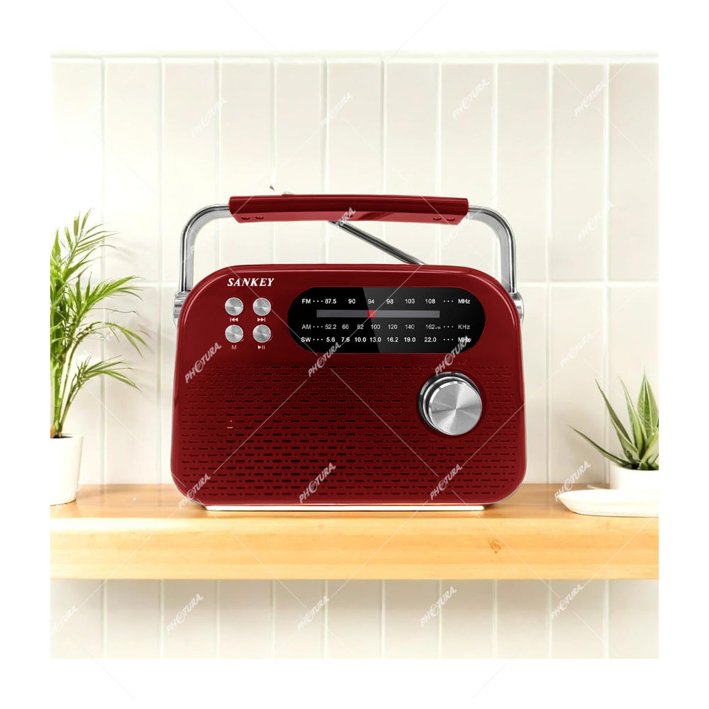 Sankey Radio Portátil | Sintonización FM | Asa Portable | Bluetooth | Rojo