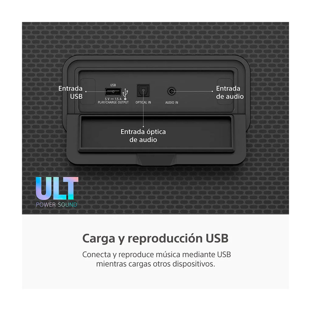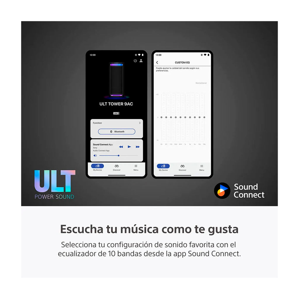 Presiona el botón ULT para disfrutar del sonido potente de ULT1 y ULT2. Selecciona ULT1 para obtener graves más profundos y de menor frecuencia. Selecciona ULT2 para obtener unos graves potentes y contundentes.