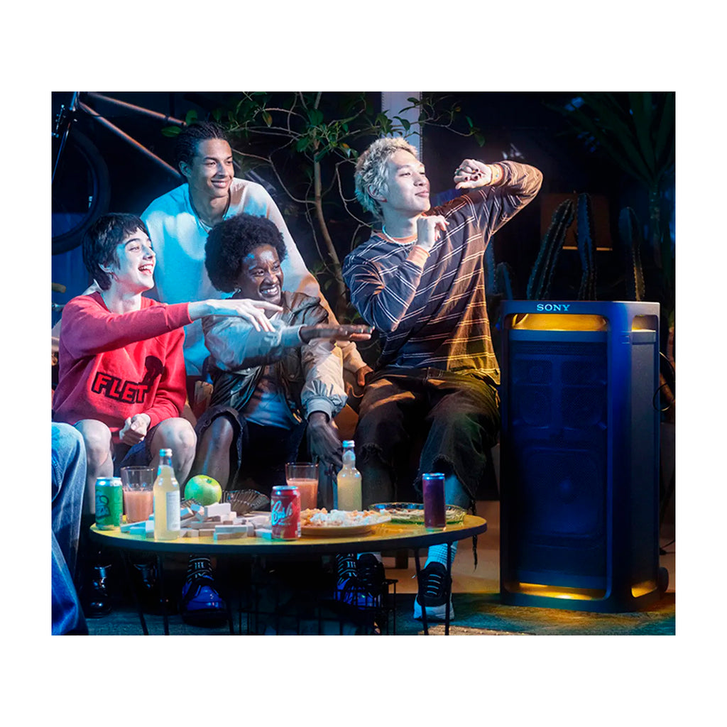 El sonido de fiesta de 360° propaga un sonido potente por todos los rincones de la sala. Cuatro tweeters brindan un sonido claro tanto en la parte delantera como en la trasera del parlante, con dos parlantes de rango medio para efectos de claridad vocal. Siente el sonido de los graves gracias a la gran X-Balanced Speaker Unit. En conjunto, permiten que todas las personas en la habitación sientan el poder de la música, sin importar donde estén.
