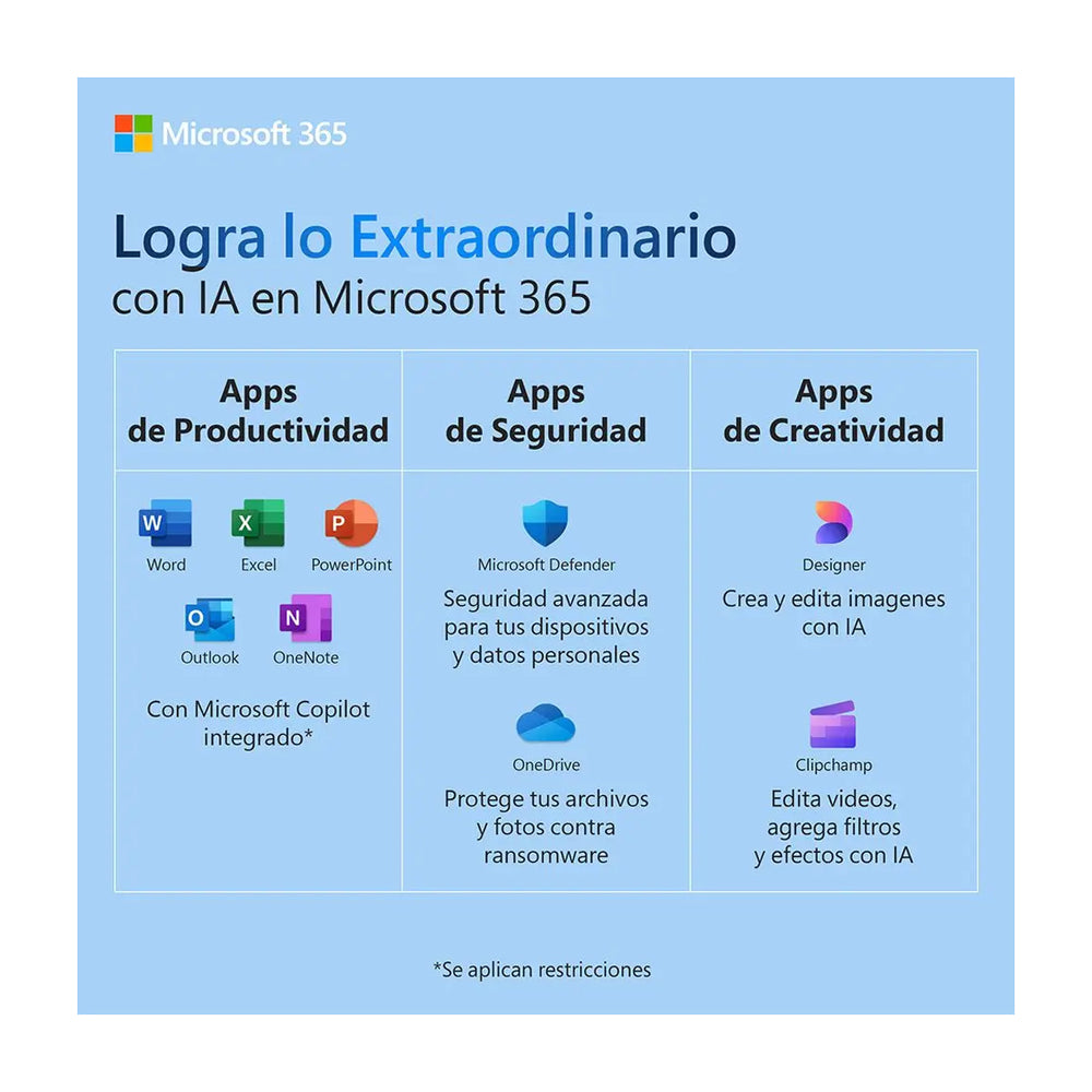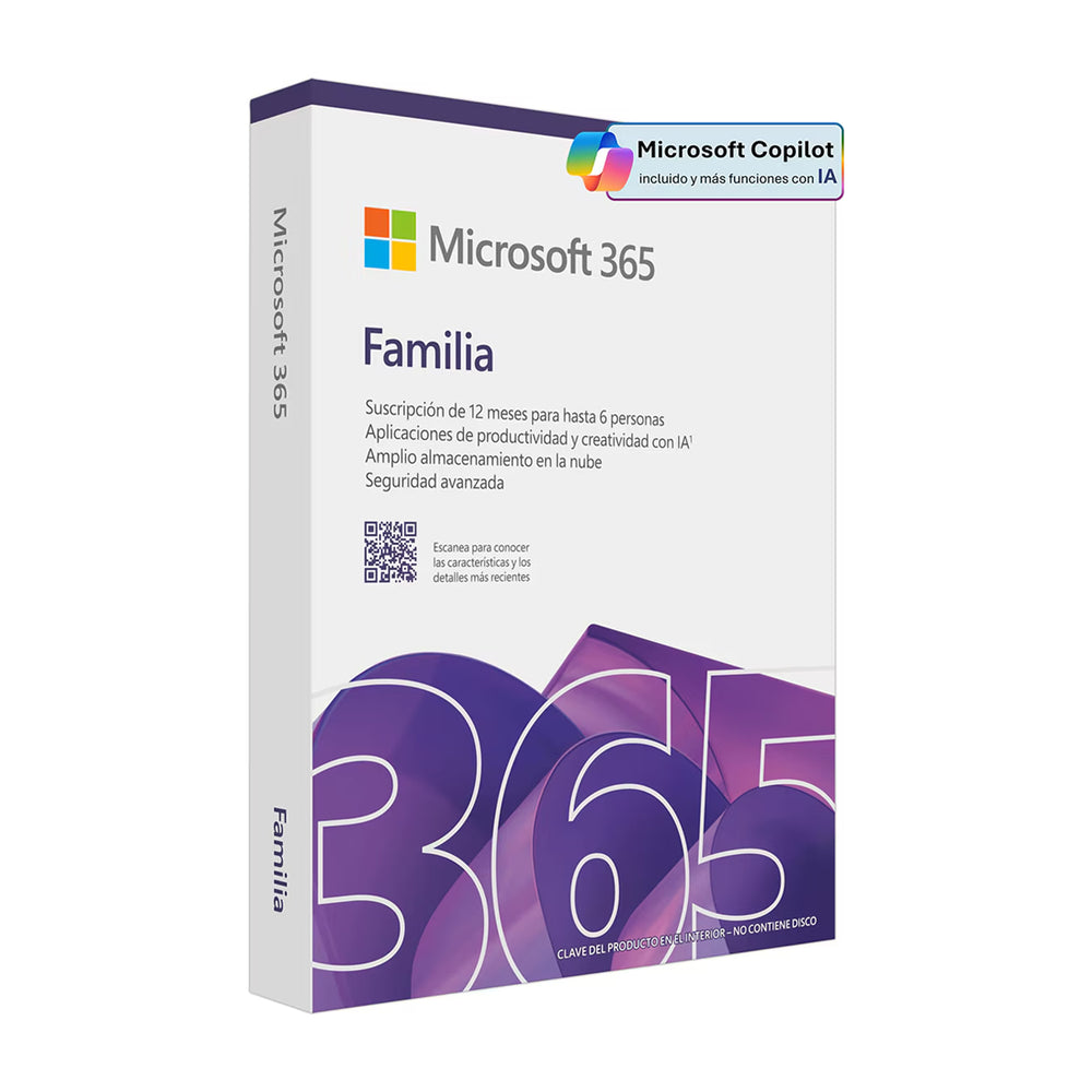 Microsoft 365 Familia es una suscripción para un máximo de seis personas que incluye seguridad avanzada, almacenamiento en la nube y aplicaciones innovadoras con IA.