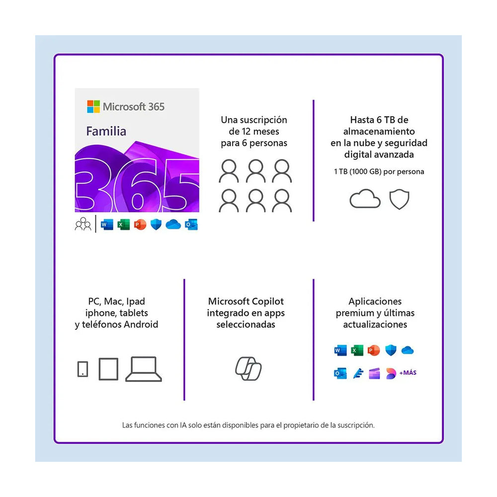 Microsoft 365 Familia Suscripción de 1 Año | Copilot IA | 6 Personas | 5 Dispositivos / Persona
