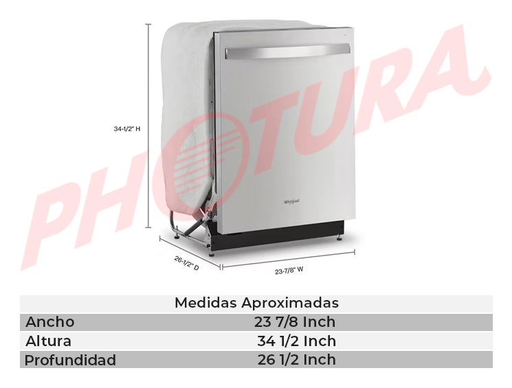 Whirlpool Lavaplatos Empotrable de 24" | Energy Star | Tercera Rejilla | Fan Drying Technology | Silencioso 51 dBA | 14 P/S | Acero Inoxidable
