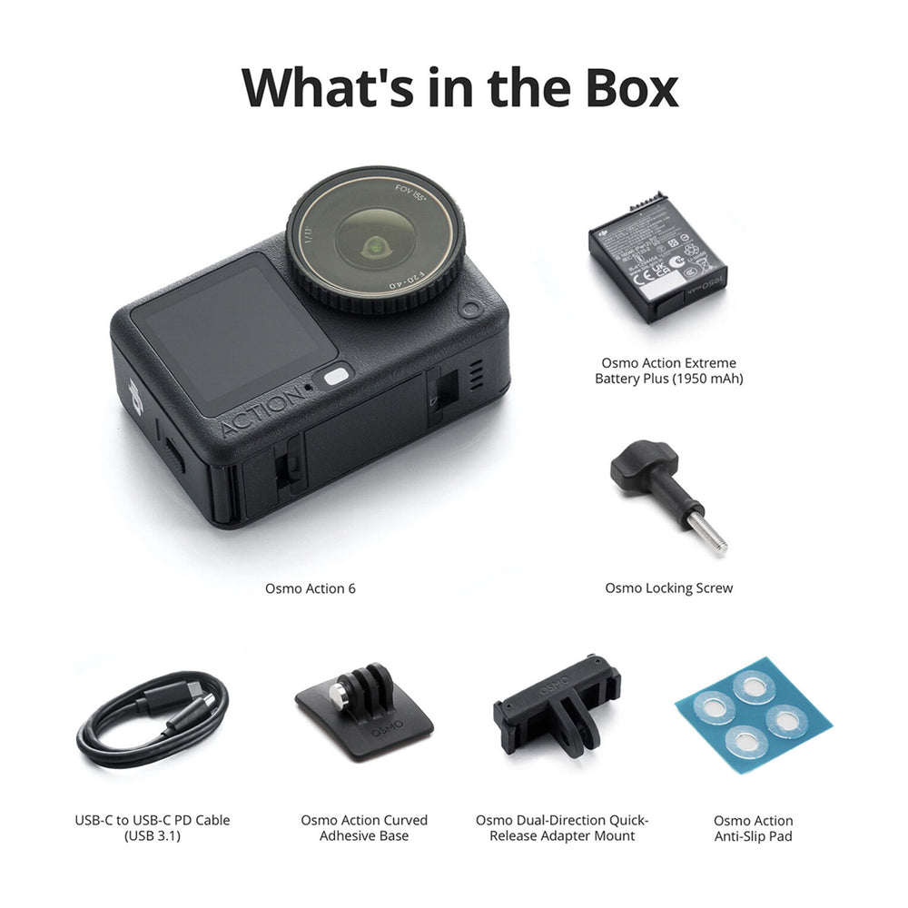 Captura secuencias de vídeo estables e impecables con una resolución de hasta 4K120 dondequiera que estés con el combo estándar de la Osmo Action 6 de DJI . La Osmo Action 6 cuenta con un nuevo sensor cuadrado de 1/1.1", modo Starburst, una apertura variable de f/2 a f/4, ahora tiene 50 GB de almacenamiento interno y es más resistente al frío. Mantiene sus pantallas OLED duales de alto brillo, los sistemas de estabilización RockSteady y HorizonSteady, un sensor de 38 MP, una duración de batería de 4 horas y un cuerpo de cámara resistente al agua con un medidor de presión de agua. Otras características incluyen imágenes fijas de 8K, centrado/seguimiento del sujeto, compatibilidad con OsmoAudio, captura de secuencias sin editar, un campo de visión de 155° y una ranura para tarjetas SD que admite tarjetas de hasta 1 TB