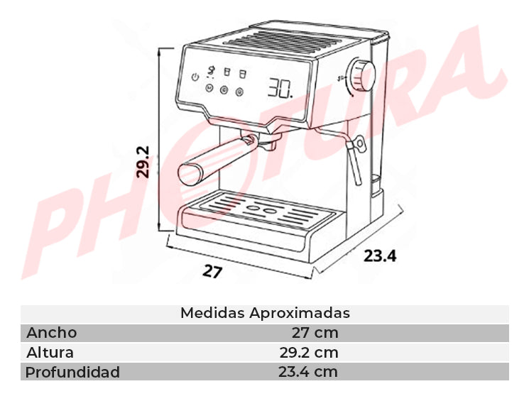 Pantalla digital con 2 funciones prestablecidas (espresso / capuccino)