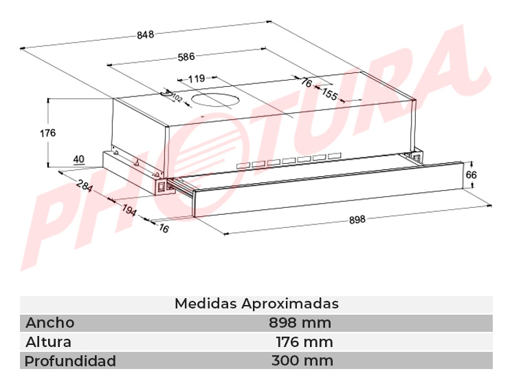 DRIJA Retráctil Touch 90 Black Extractor de Grasa Empotrable | Tipo Compacto | 3 Velocidades | 1 Filtro de Carbón | 2 Filtros de Aluminio | 270m3/H | Negro