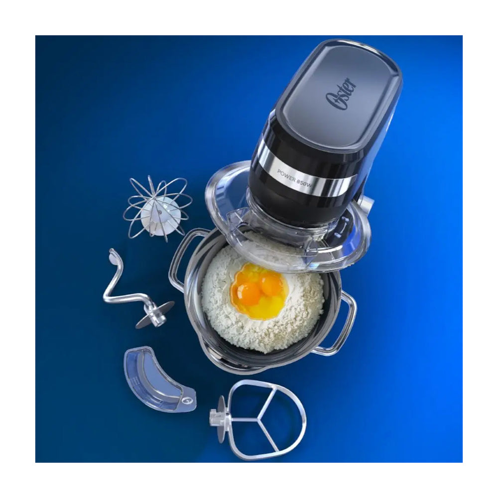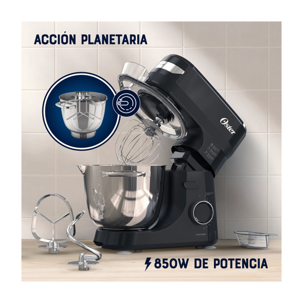 La batidora planetaria Oster de 850W es perfecta para cualquier tipo de preparación. Cuenta con acción planetaria para una mezcla uniforme y un tazón de acero inoxidable de 4 litros. Sus 12 velocidades permiten batir, mezclar y amasar con facilidad. Incluye accesorios especializados y una cubierta antiderrame. Además, su base antideslizante brinda estabilidad, y su diseño moderno la convierte en un aliado ideal para tu cocina.